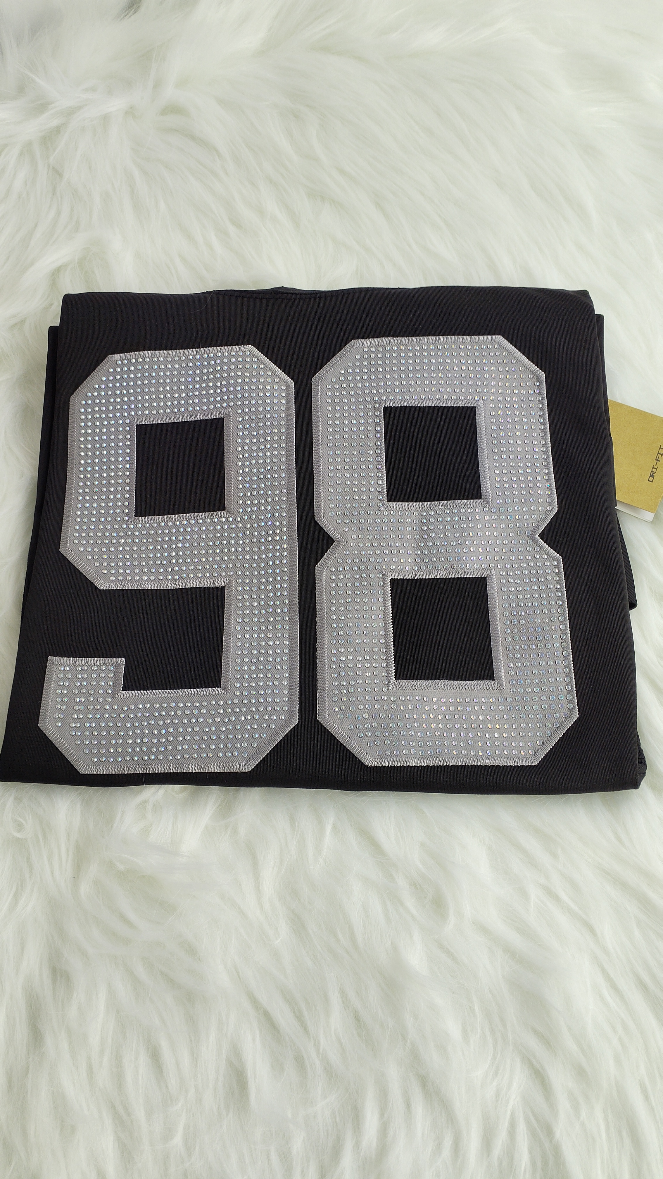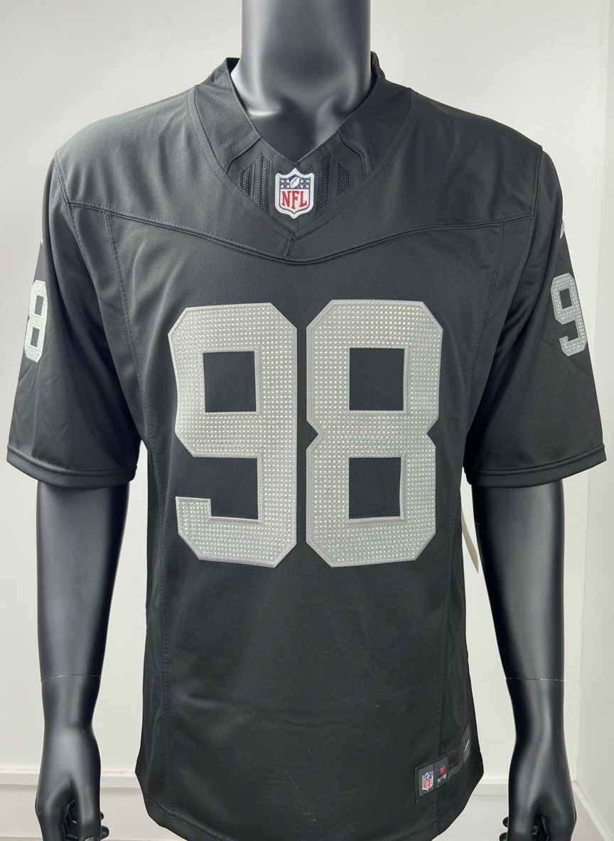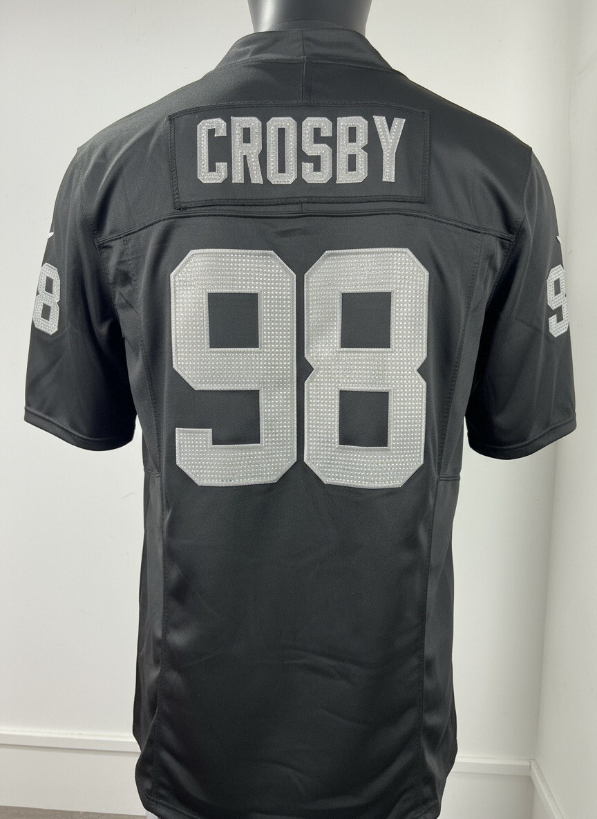 Showcase your favorite player's on-court prowess in this embroidered and rhinestone-embellished Las Vegas Raiders player Max Crosby game jersey. Featuring embroidery and rhinestones of the player's name, number, and team information, the jersey allows you to project a stylish image before the game while providing a comfortable and lightweight feel. Designed for everyday activities, this jersey offers a flattering fit, excellent breathability, and mesh side panels to keep you dry and comfortable as you celebrate every exciting moment of the Las Vegas Raiders season.